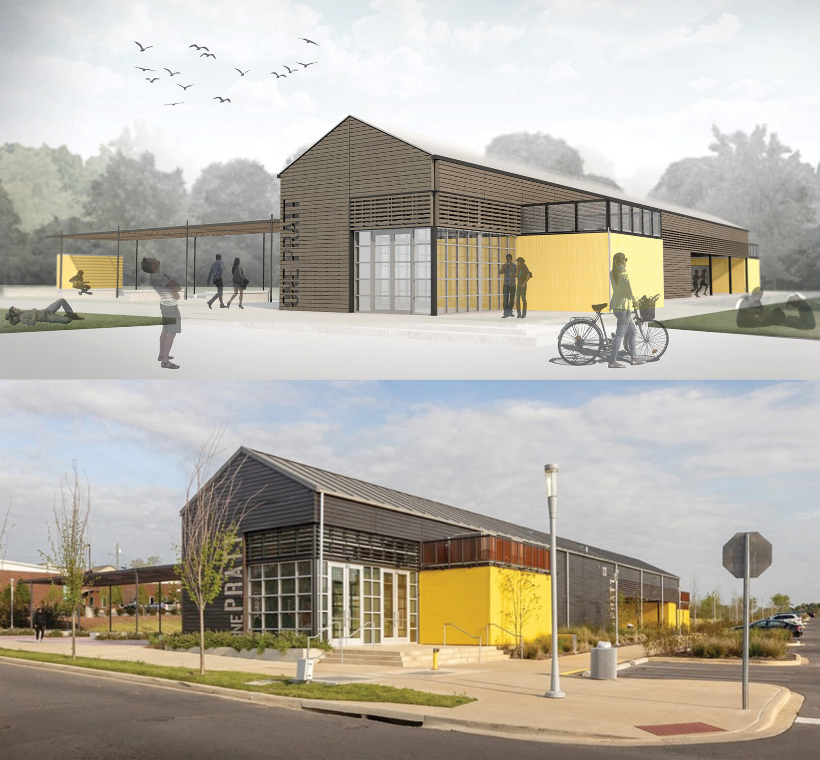 Design Initiative was selected as a member of a team including Tom Leader Studio, of Berkeley, California, and Macknally Land Design to design a new community center and park as the central piece to the redevelopment of a neighborhood ravaged by tornadoes in 2011. Located on an 8-acre parcel of land that also included the neighborhood library, the completed work forms the heart of the community, for both existing housing as well as planned new housing.