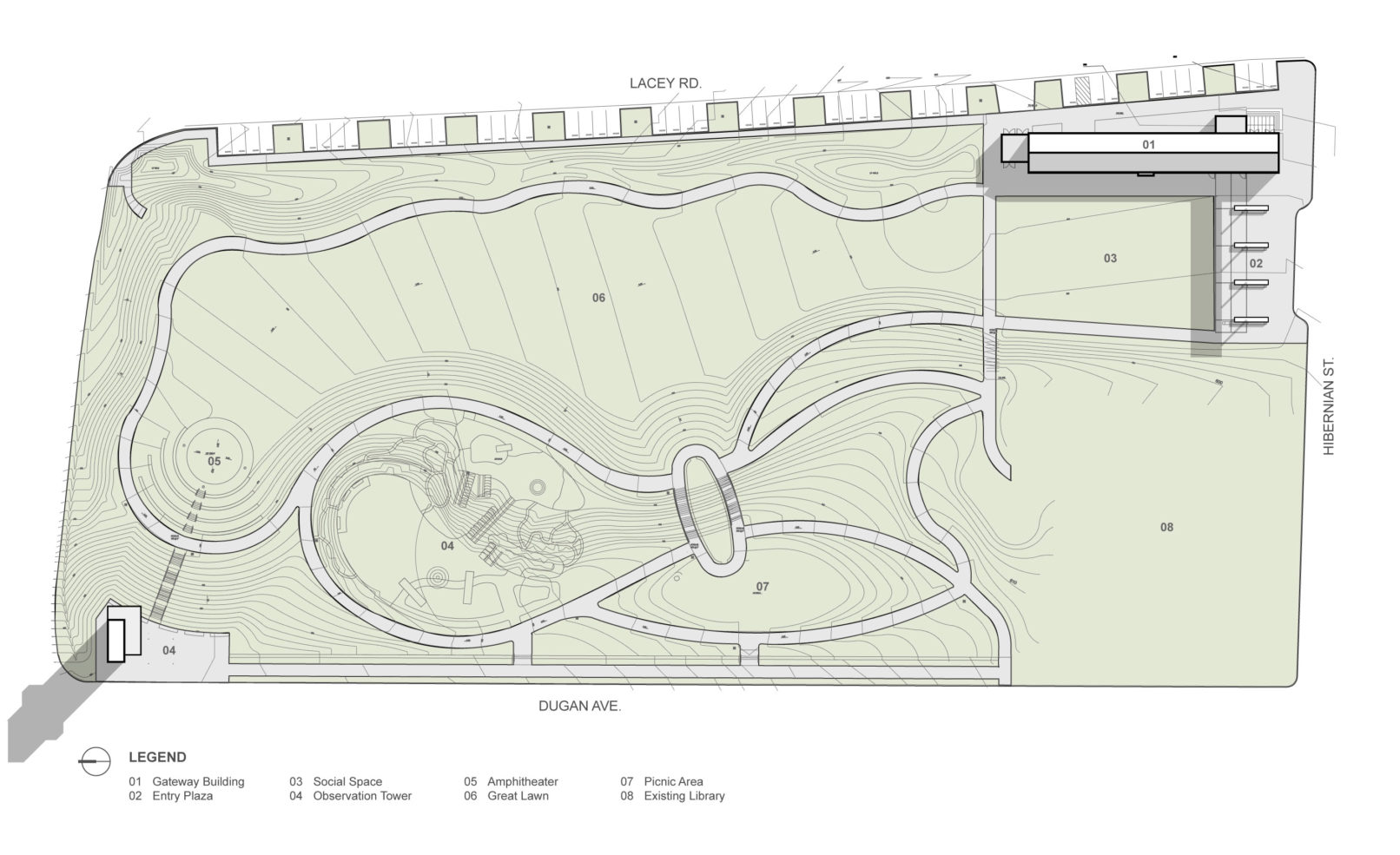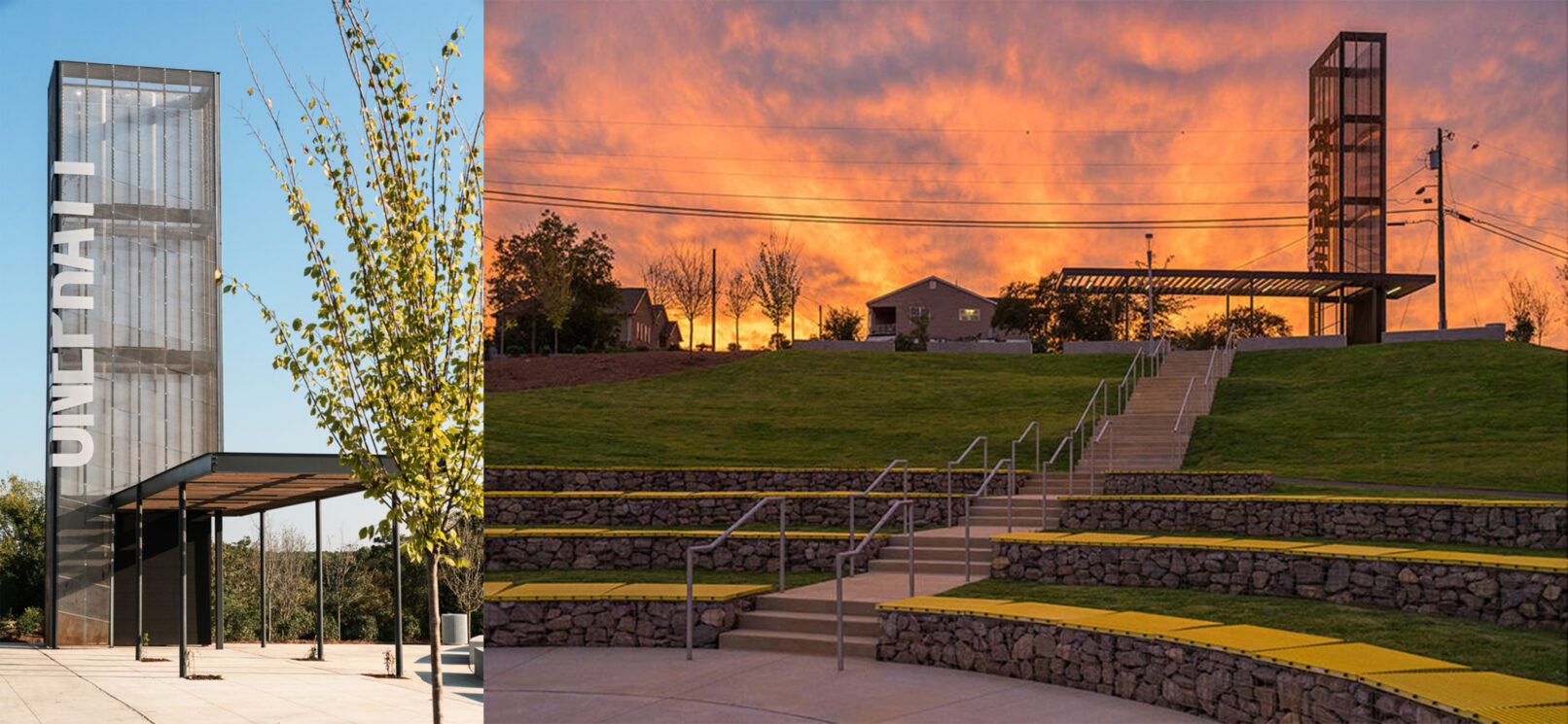 Both the Gateway Building and the Observation Tower were coordinated with the Landscape Architecture Team to create a seamless integration of program and structure. The buildings intentionally open out to the site, creating useful space for the events the community center will support.