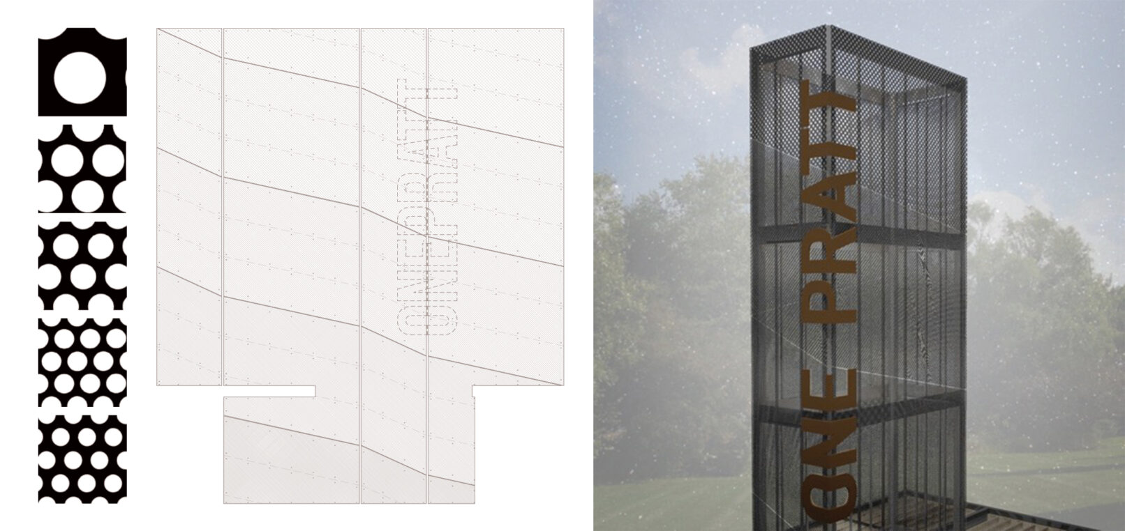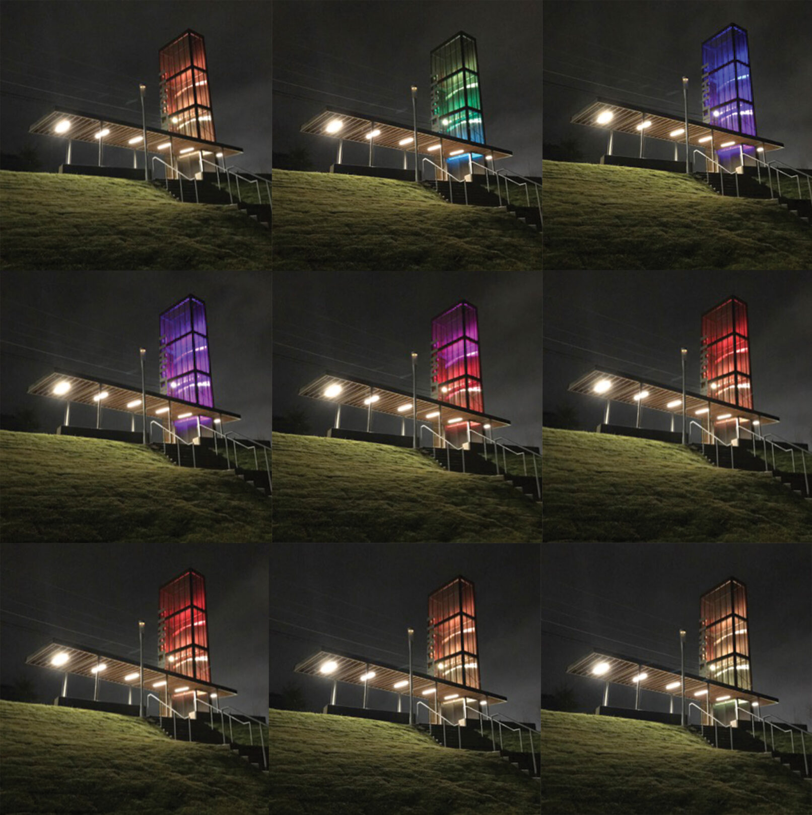 Observation Tower and Trellis – While the Gateway Building anchors one corner of the super block, the Observation Tower provides a landmark feature at the opposite corner. The steel structure with perforated metal skin is illuminated to create a beacon and an icon which can be seen throughout the neighborhood.