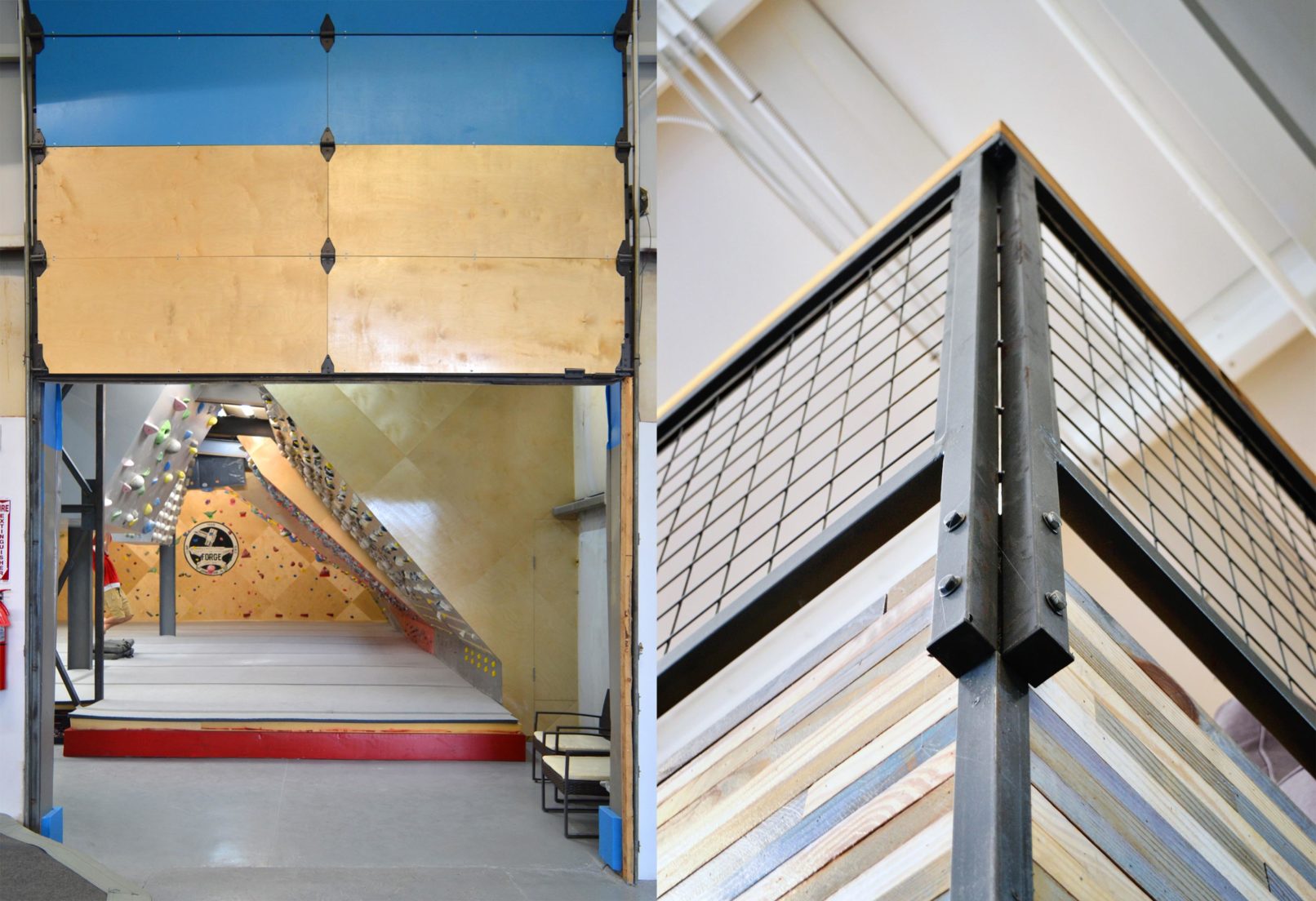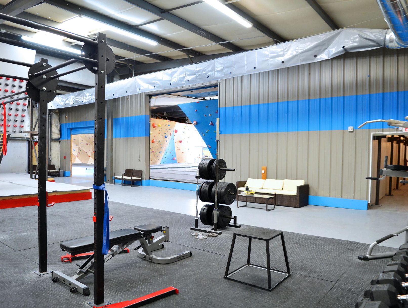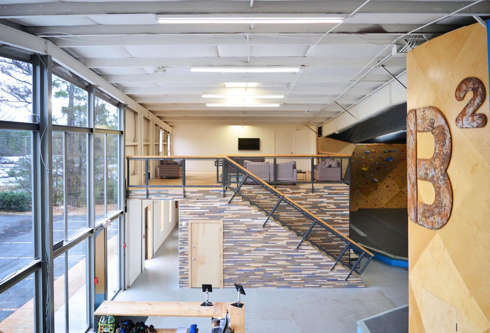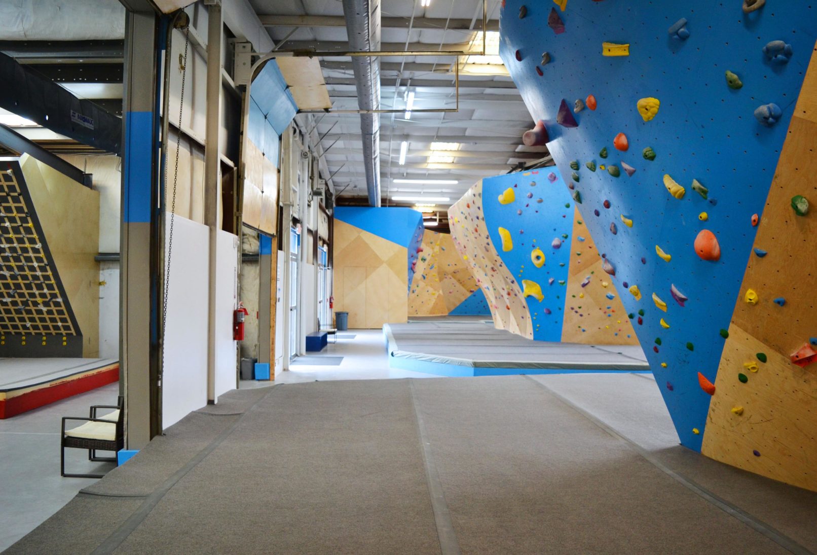 New rock climbing facility in an existing butler building near Red Mountain Park in Birmingham, Alabama.