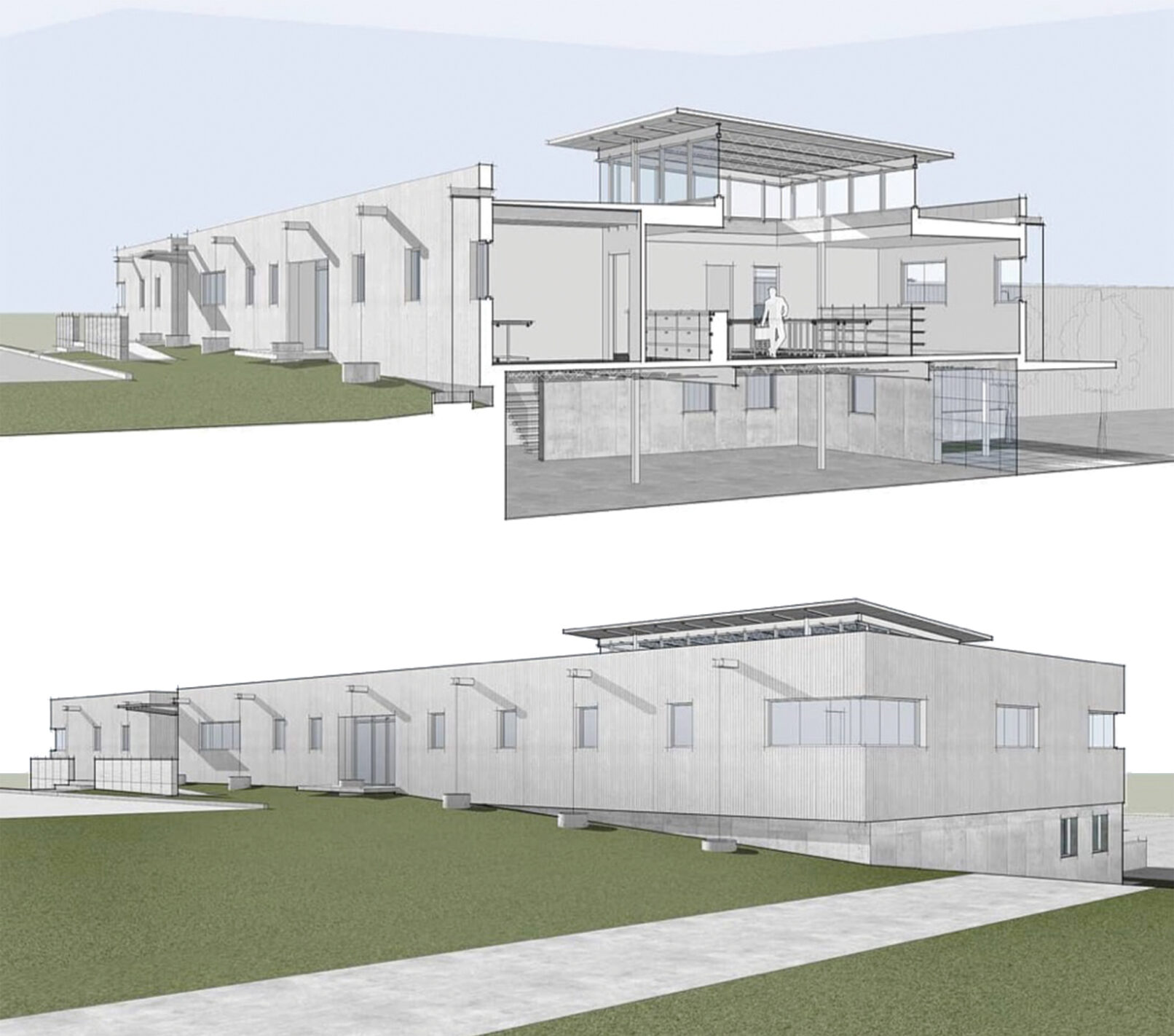 Looking for a new home, T.E. Stevens Construction began this project by acquiring an existing stone fabrication facility on the outskirts of Birmingham. A collection of existing prefabricated sheds were partially demolished and renovated to serve as new warehouse needs of the construction company. A new two level expansion was added, fronting the existing sheds and mediating between public parking and access and the utility areas in the back. The offices, organized along a linear circulation path, transform to culminate in a centralized clerestory lit space surrounded by private offices.